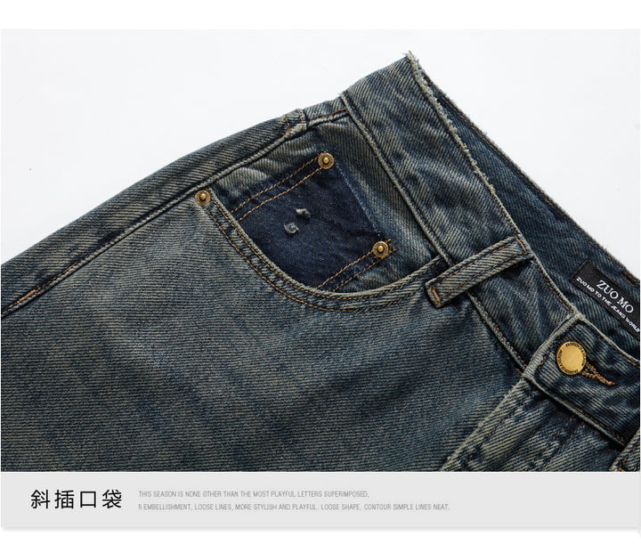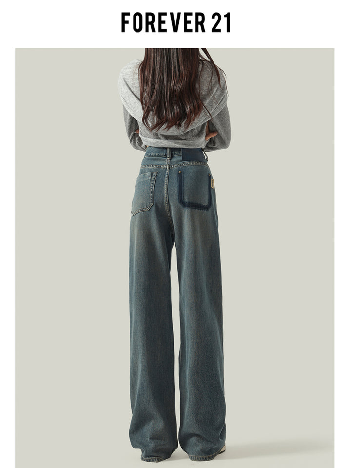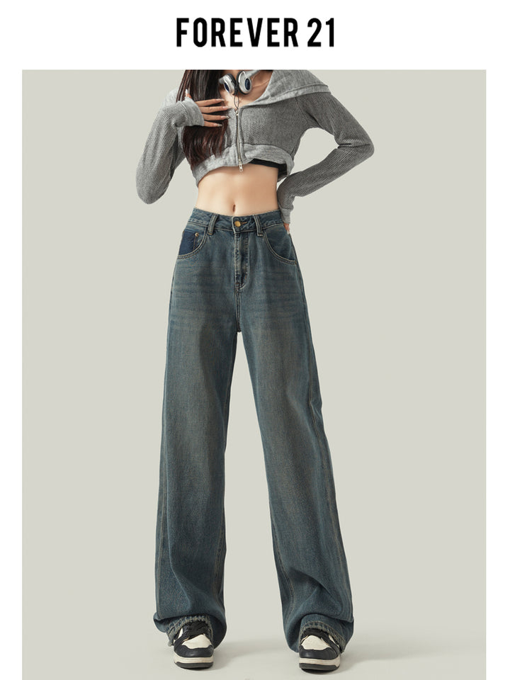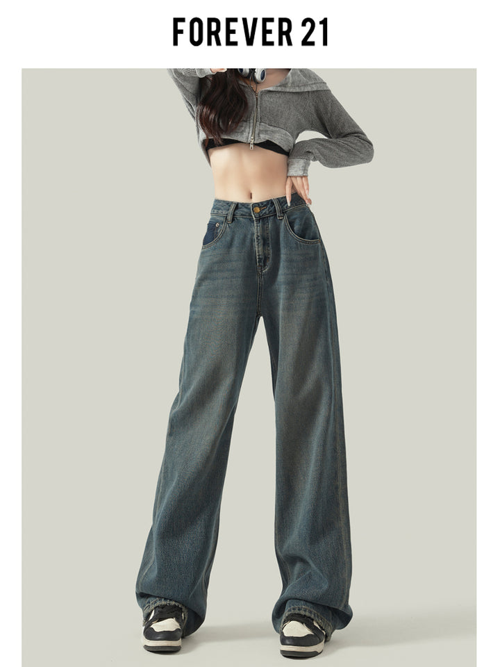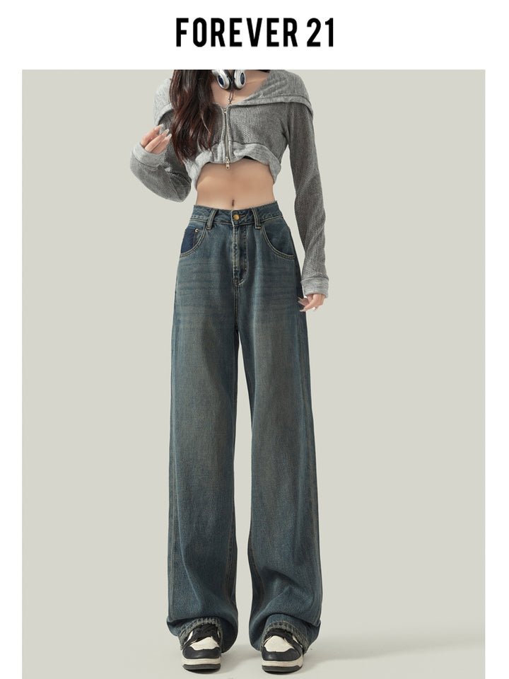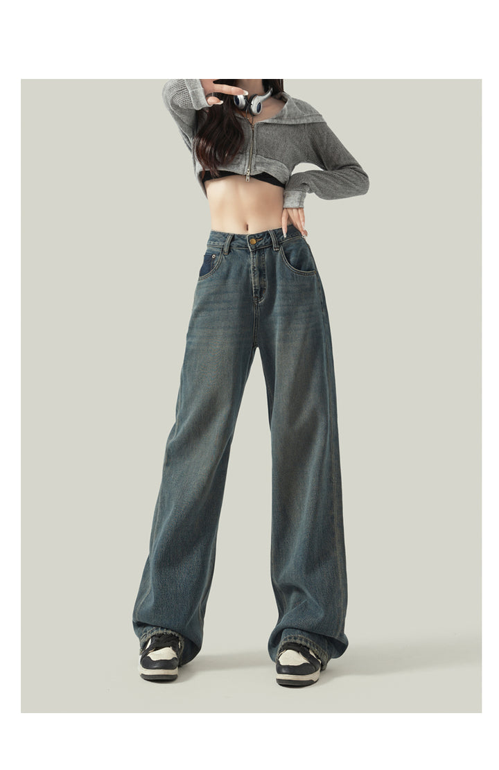Cement gray straight leg jeans for women, new style, retro Hong Kong style, slimming, drapey wide leg pants