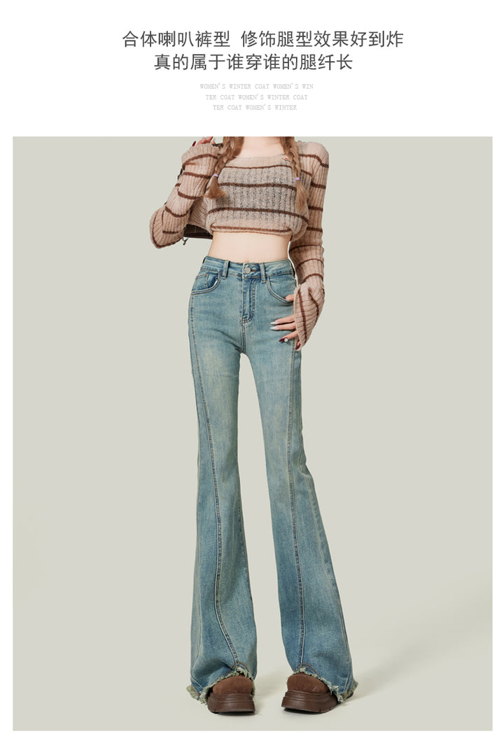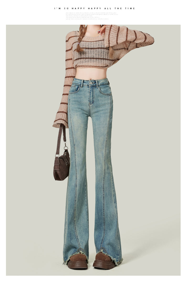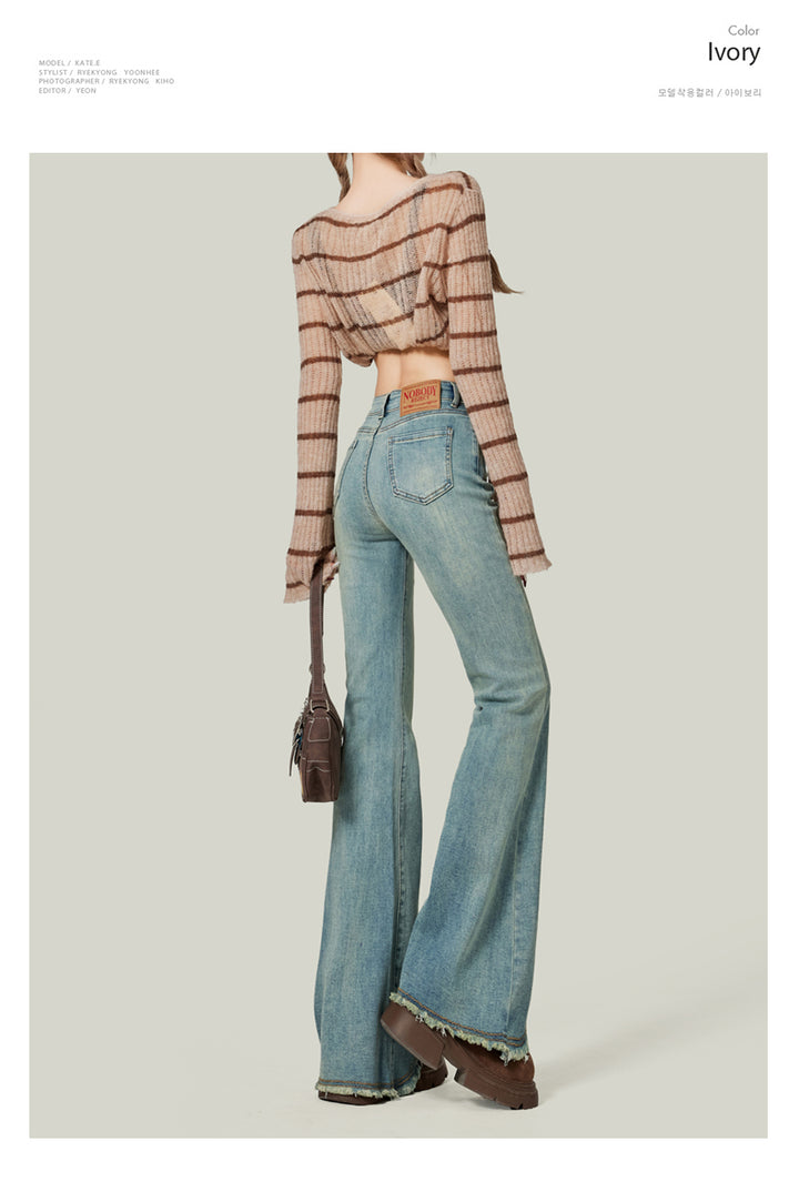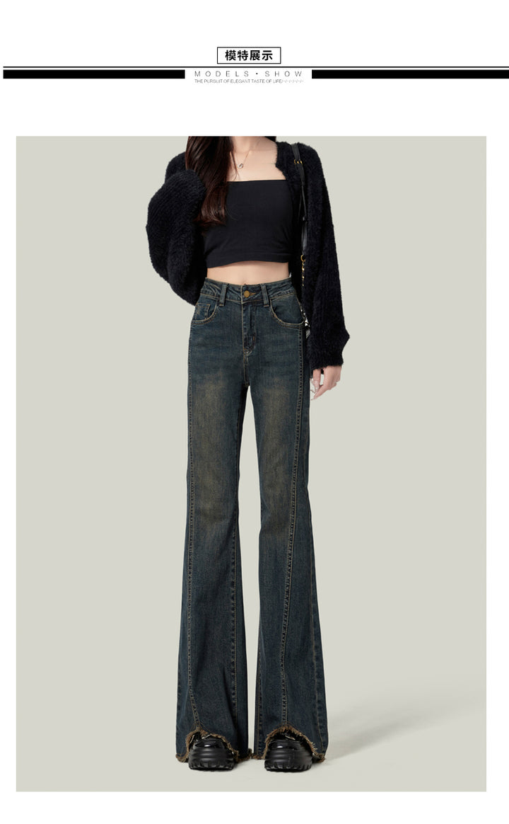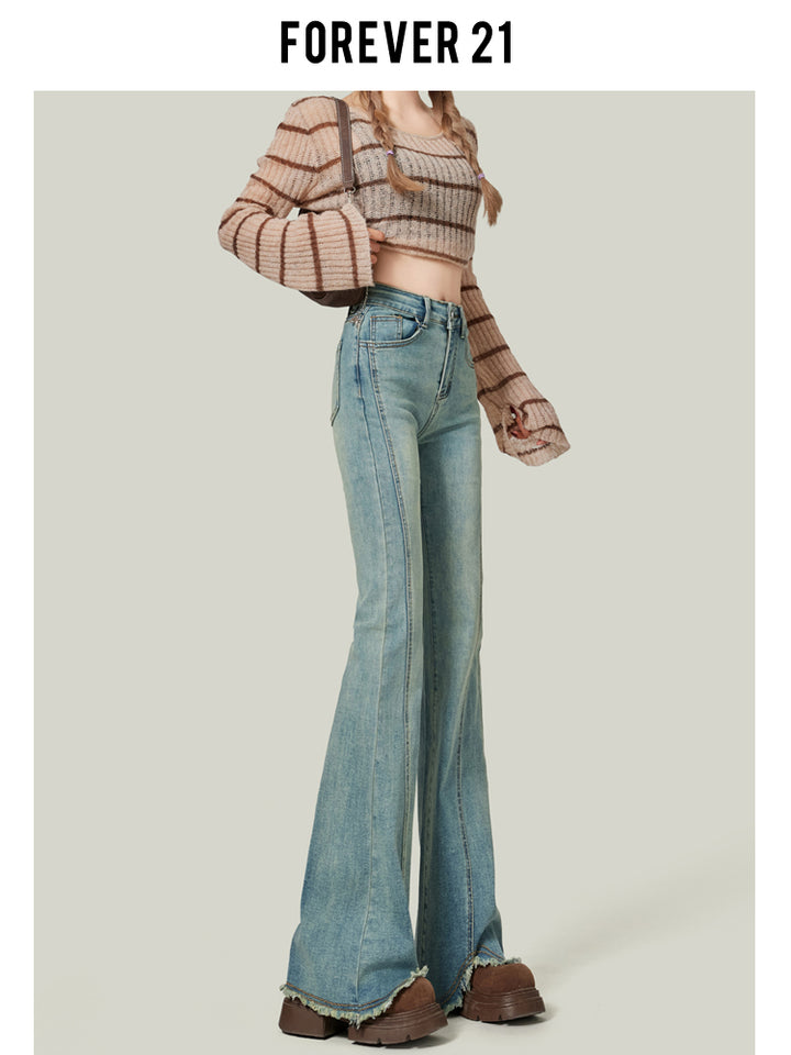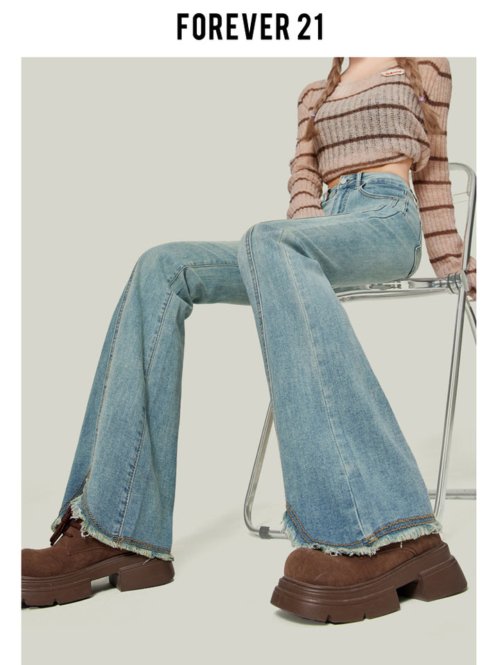 These split-hem flared jeans have a very flattering cut that naturally follows the lines of the legs, offering a slim fit without being too tight, and providing comfort without restriction.