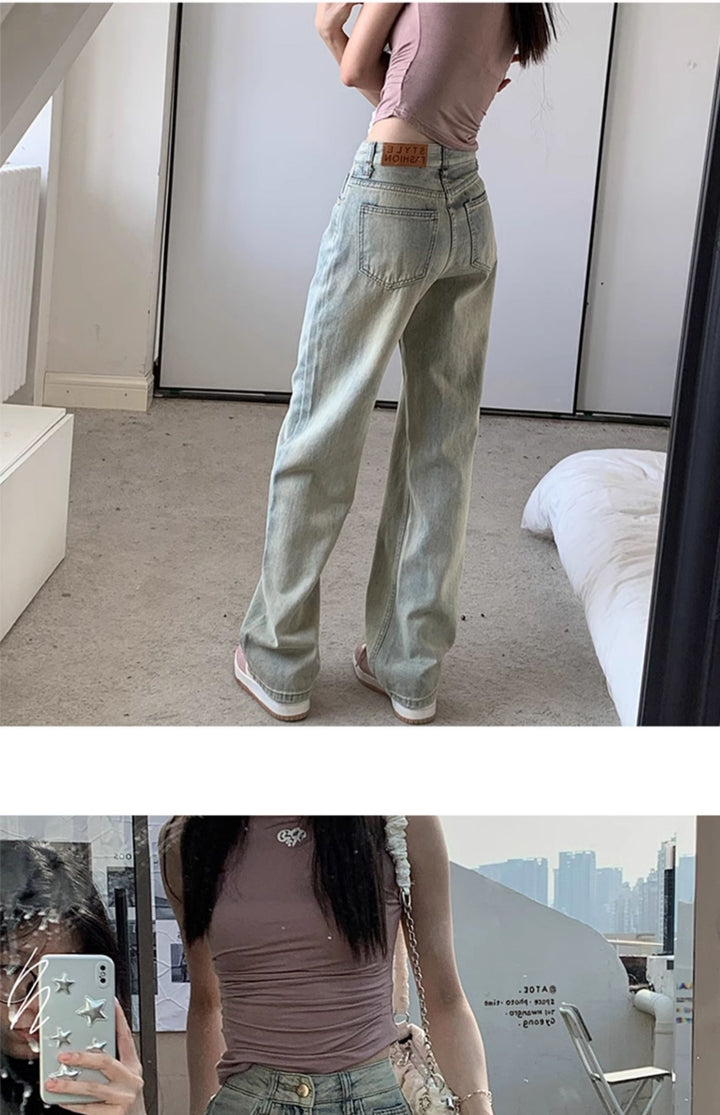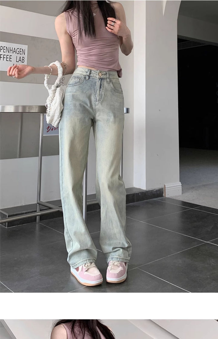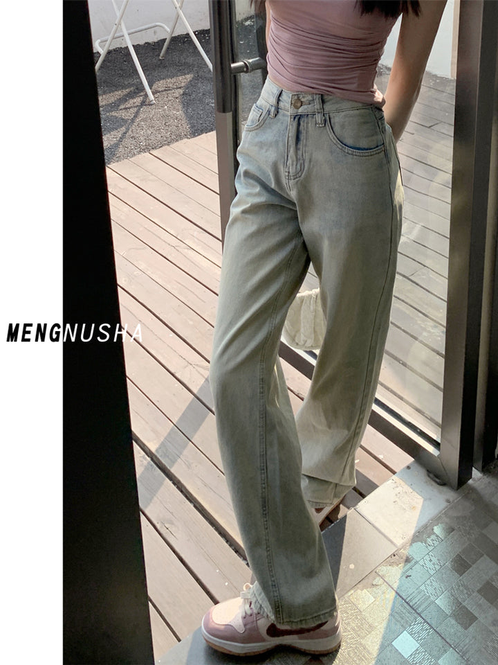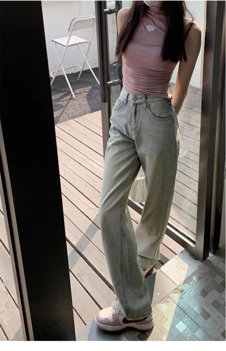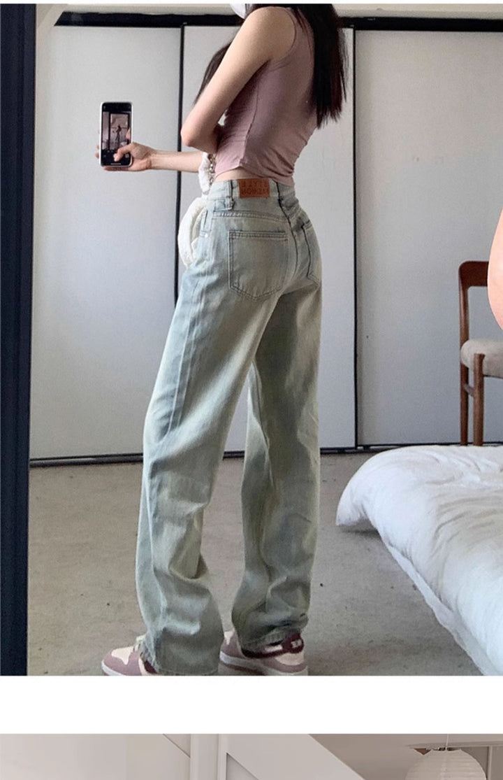 Light-colored slim-fit wide-leg jeans for women, new style, high-waisted, slimming, petite, loose straight leg pants