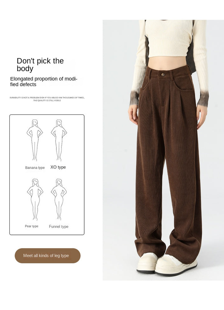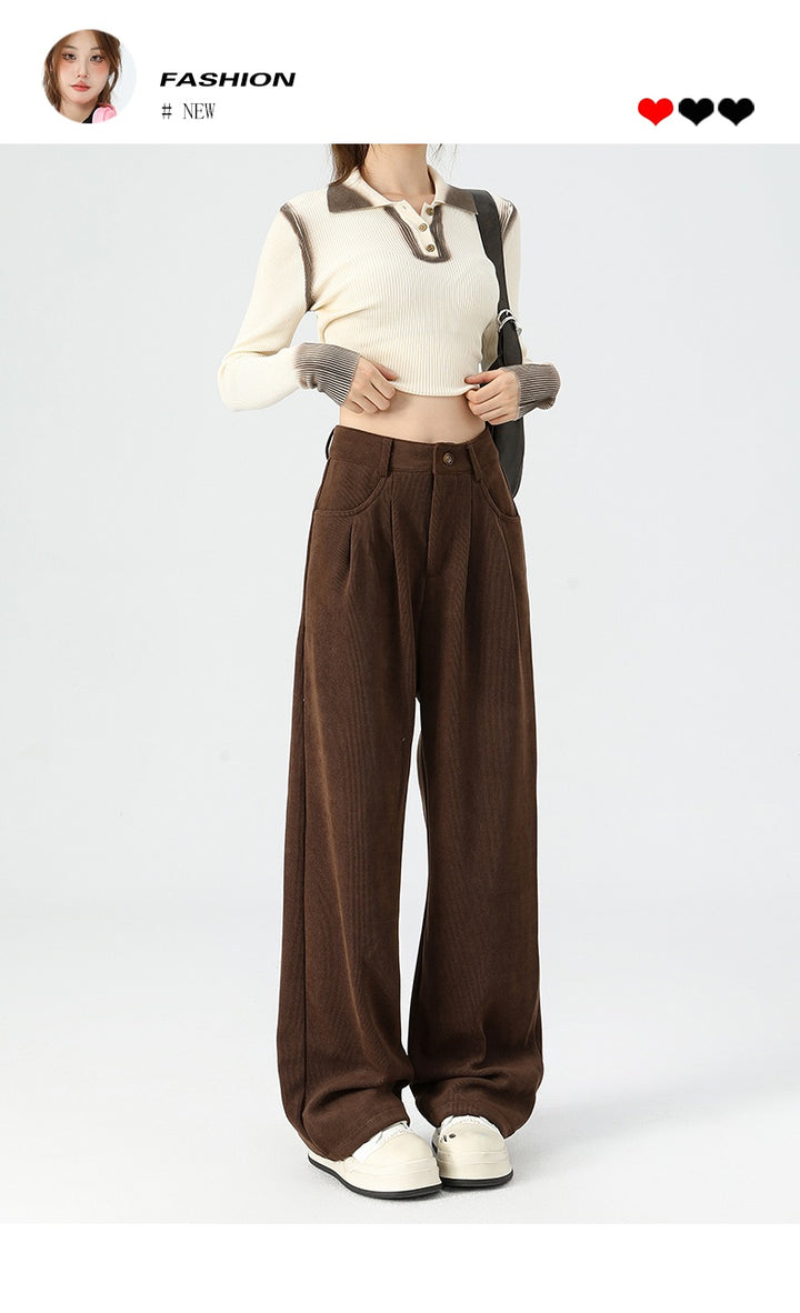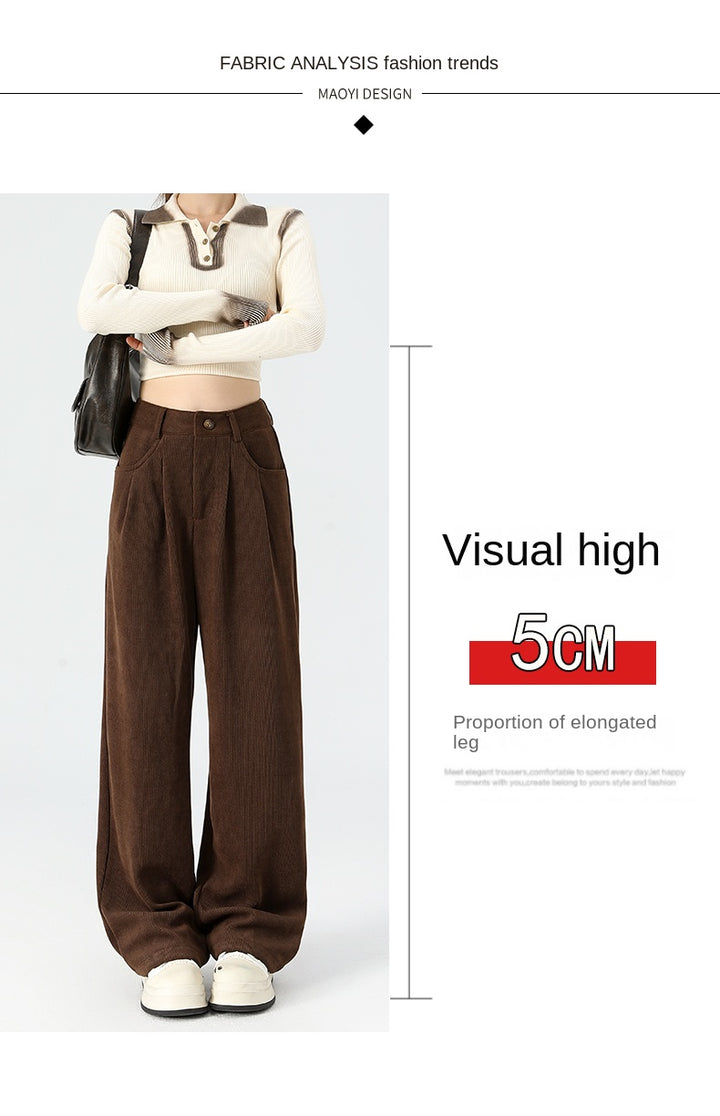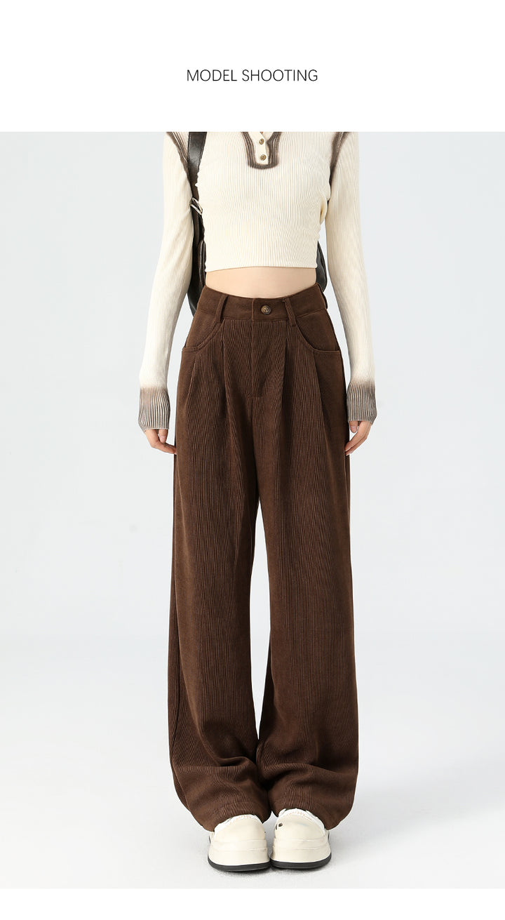 Maillard dark brown corduroy pants, new autumn/winter style, high-waisted, short-leg brown, casual pants.