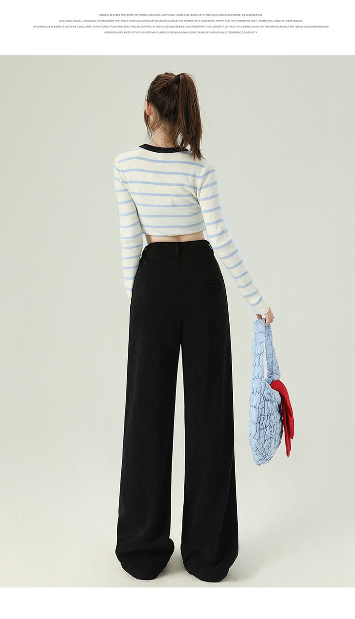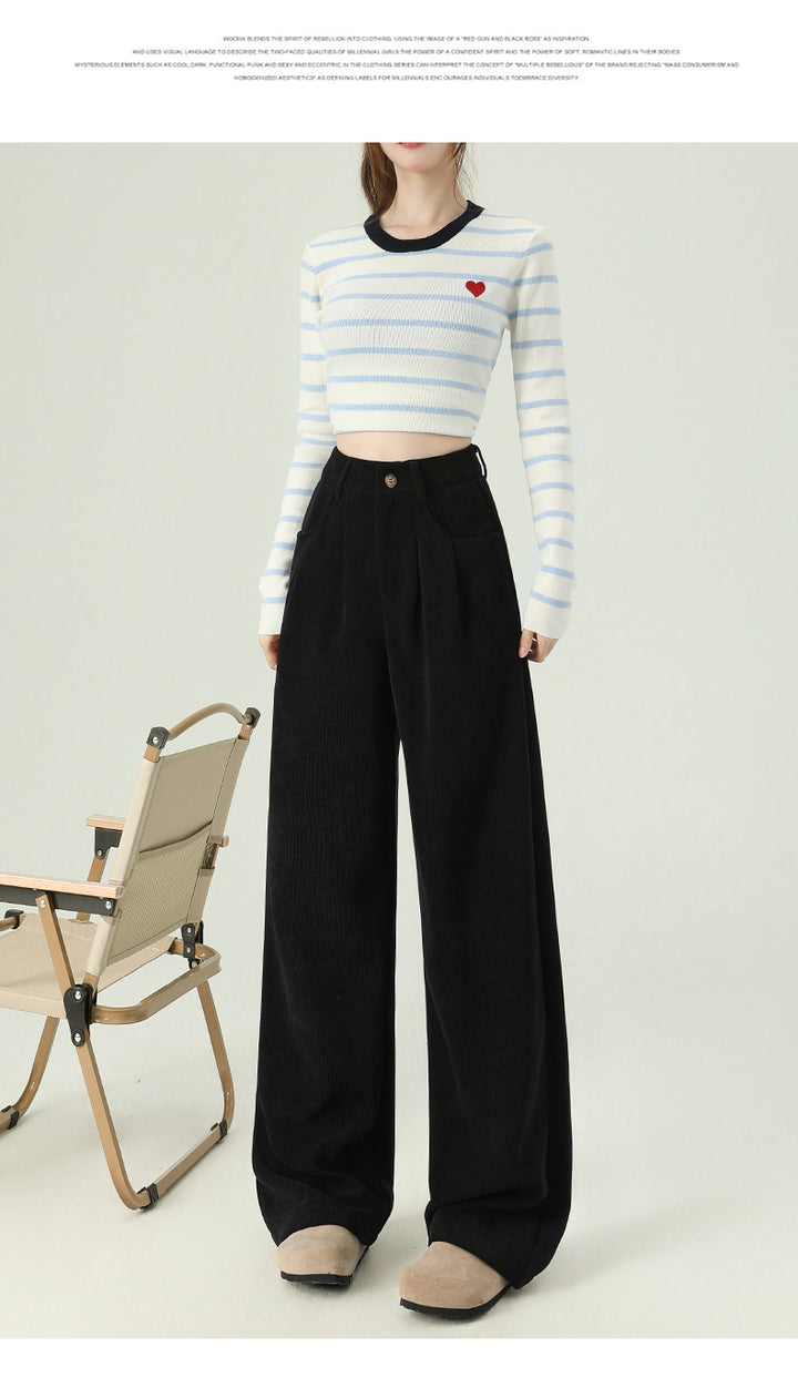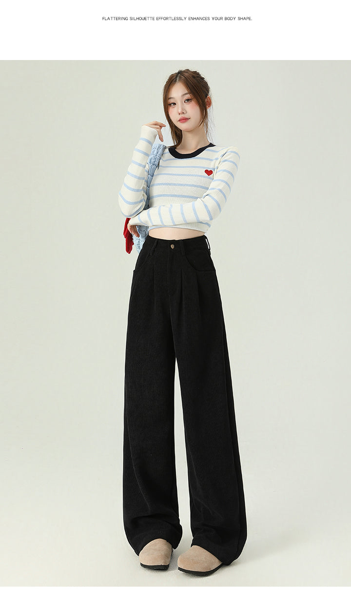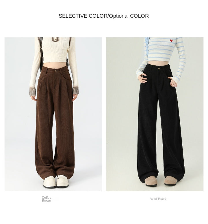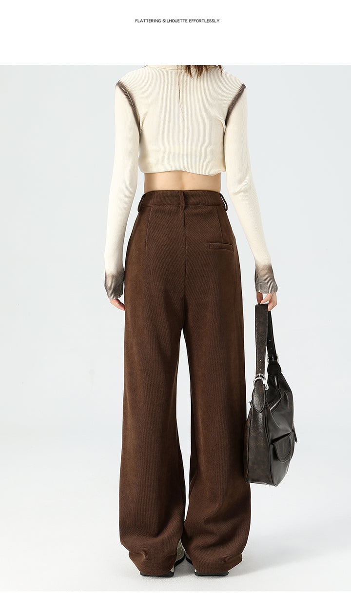 Maillard dark brown corduroy pants, new autumn/winter style, high-waisted, short-leg brown, casual pants.