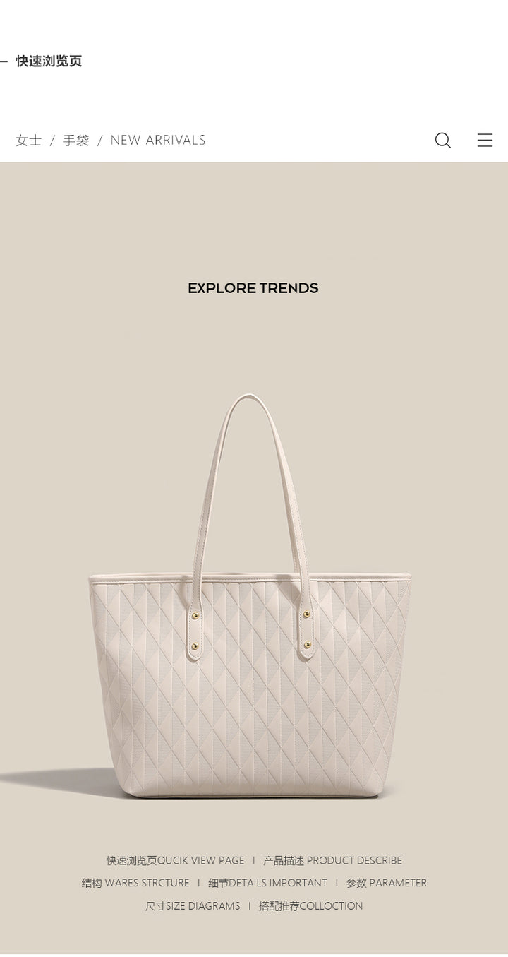New large-capacity tote bag/shoulder bag with a sophisticated design, perfect for everyday commuting.
