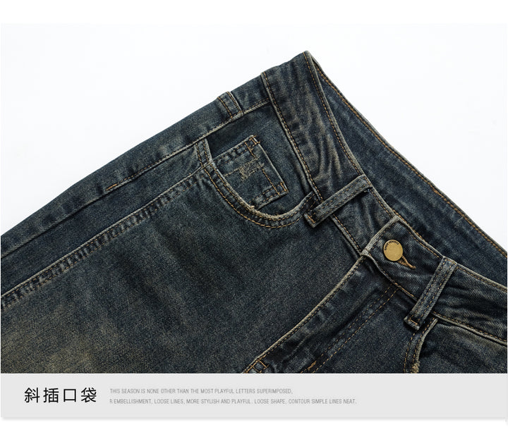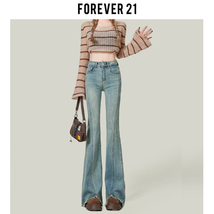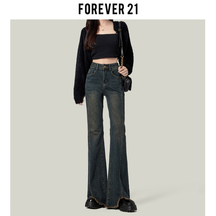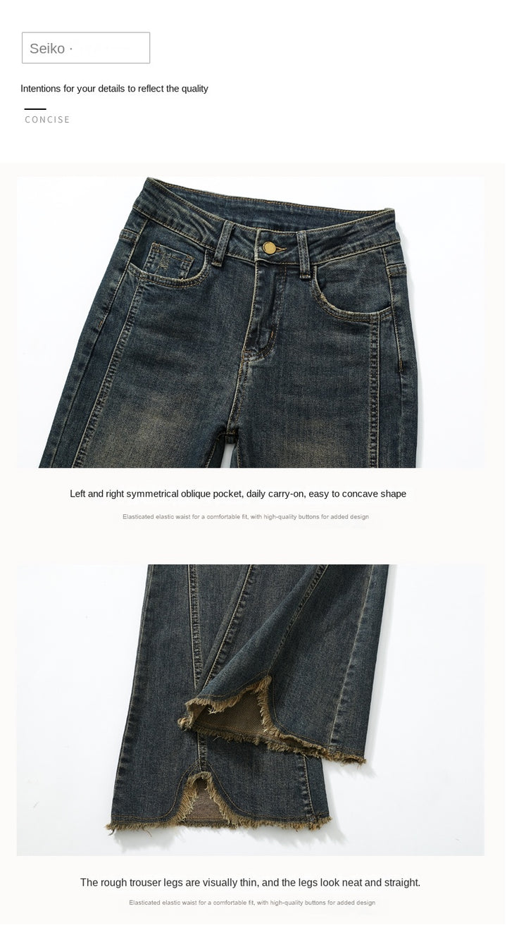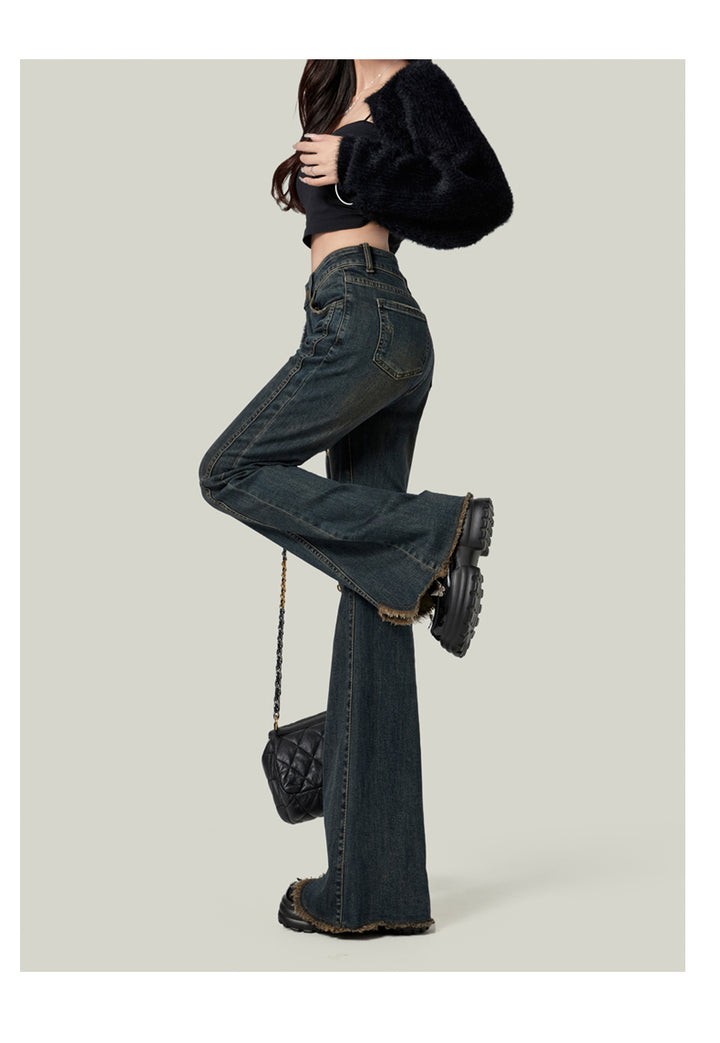 Retro American style high-waisted nano gray flared jeans for women, slimming, platform, floor-length trousers