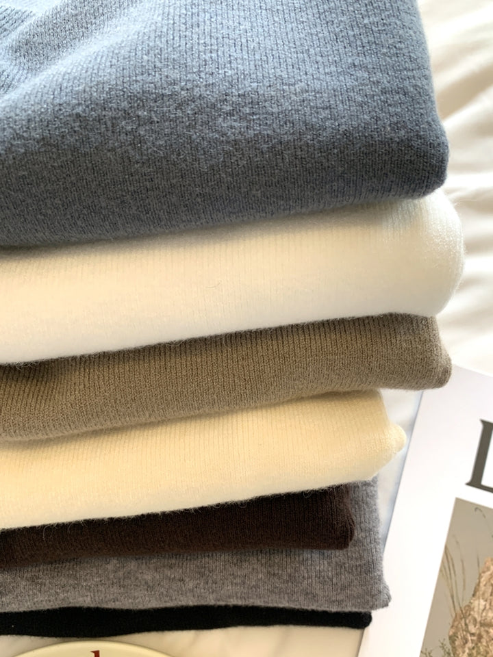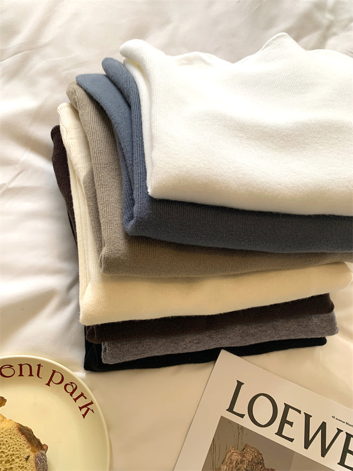 Soft and fluffy cashmere-feel high-neck knitted base layer sweater for women in spring, autumn and winter, with fleece lining, solid color, pullover sweater.