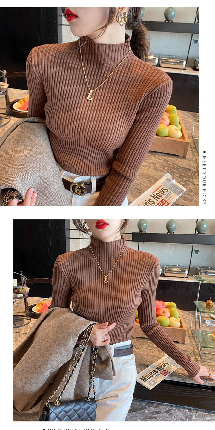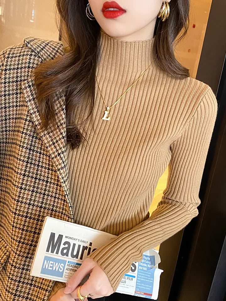 Women's high-neck sweater, new autumn and winter style, mid-neck base layer, high-end slim-fit knit top.